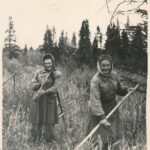 Represseeritu Imbi Käspri heinateol Inta vangilaagris. Venemaa, Komi ANSV, 1955-1956. Vikatiga niitmine.