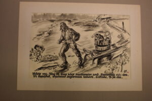 Pilt supitoojast, mehest, kes kelgu ette rakendatuna tirib kelku, millel puust tünn supiga, katteks palakas. Joonistuse annotatsioon annab teada: "Märts 1942. Täna on tema käes supitoomise kord. Supitoojale 0,5l lisa. TPI õppejõud, lõpetanud Inglismaal ülikooli. Eestlane. Ta jäi ellu". Vatjovkas ja läkiläkis mees kulgeb mööda teed, taamal on üksik hoone ning metsaviirg.