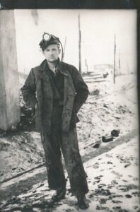 Represseeritu Tõnis Abiline söekaevuri riietuses.