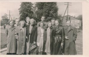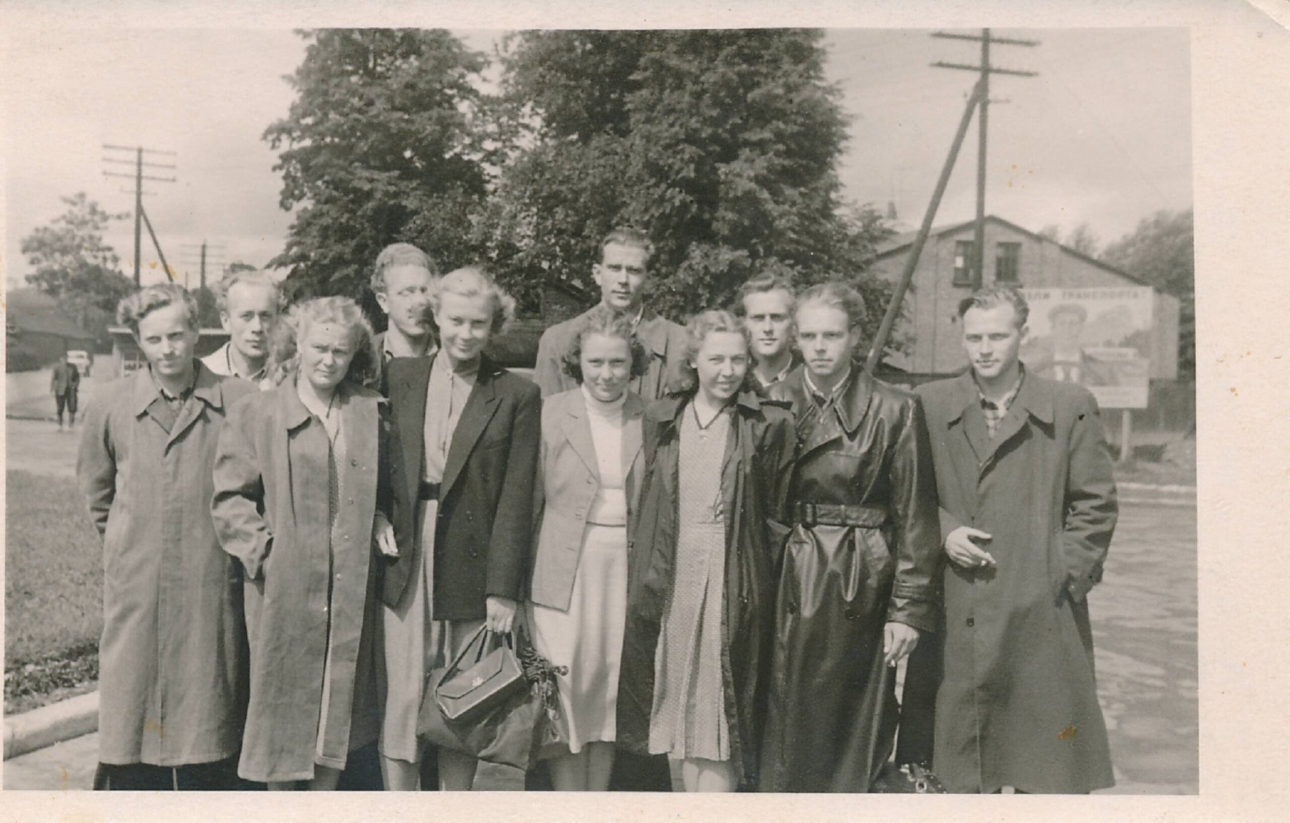 Tartu raudteejaamas Siberi vangistusest tagasi jõudnud eestlased. Vasakult: Heiki Vaibla, Karl Piir, Aime Teska (Espenberg), Jüri Mootse, Riita Vint (Sarv), Ellen Rander (Kelder), Ülo Raidma, Virve Ojamäe (Krist), Rein Liik, Ilmar Madisson, Ivar Kurg.