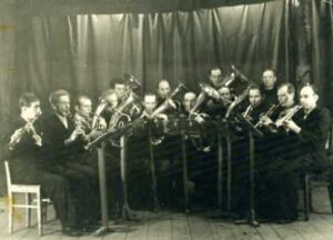 Meesvangidest moodustatud orkestri esinemine Omski I laagripunktis. Orkestris oli 2 eestlast: (vasakult) flöödiga Endel Kaseoja, klarnetiga Joh. Lepp.
