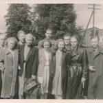 Grupifoto. Represseeritud eestlased on jõudnud Siberi vangistusest tagasi Eestisse. Tartu raudteejaam, 1956.a.