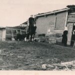 Represseeritu Anton Roop (hobuse seljas) elamu ees. Venemaa, Siber, Igarka, 1954-1958.